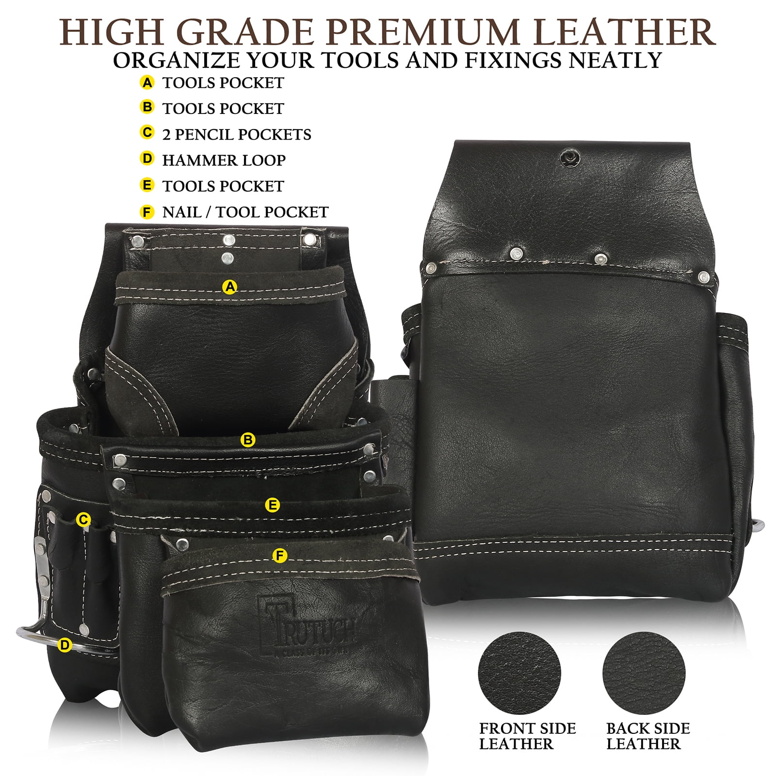 Trutuch Leather Tool Belt Black Color 19 Pockets Leather Tool Pouch Bag Belt Framers Tool Belt Carpenter Construction Handyman Electrician Walmart Com